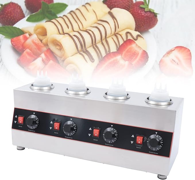 • 🍕【Wide Applications】- 4 Pot Electric cheese warmer is designed to heat and maintain the temperature of sauces such as caramel, ketchup, salad dressing, butter, chocolate, curry, cheese. etc., widely used in hotels, restaurants, cafes, and cold drink stores.