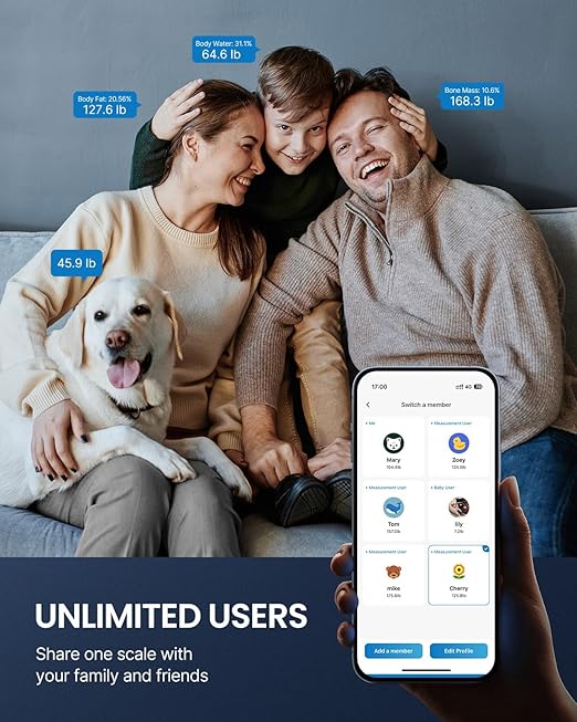 • User-Friendly and Convenience: The Baby Mode can record your little ones' growth or furry friends' weight, and accommodate unlimited profiles. Now you can share one scale with your whole family, or even with your friends and colleagues. Get ready to achieve your fitness goals with the RENPHO Smart Body Scale and App!