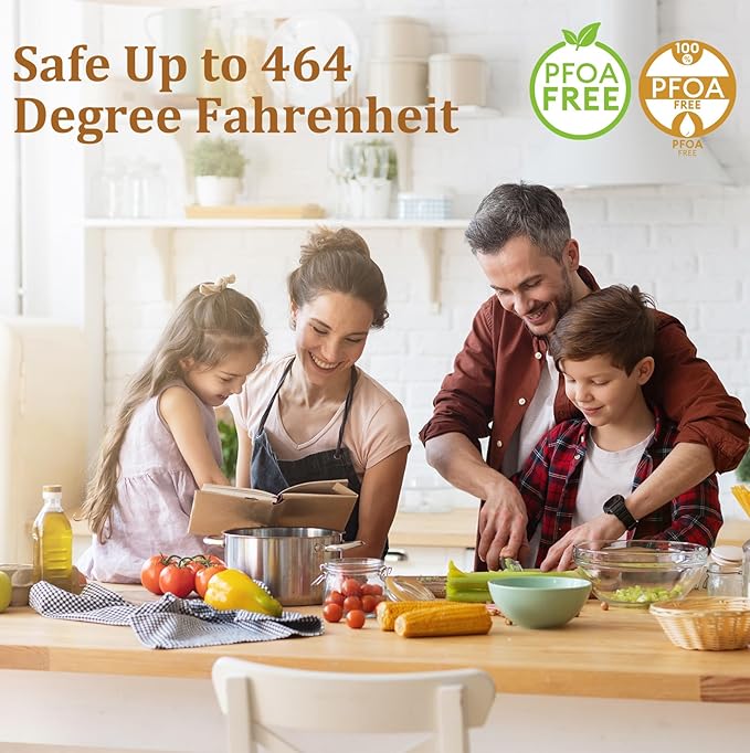 • Health-Conscious Innovation: Our triple-layer coating outperforms traditional nonstick pots and pans surfaces, requiring 60% less oil for guilt-free cooking. Independently certified PFOA/APEO/lead-free, nonstick integrity is 3x longer than basic pan