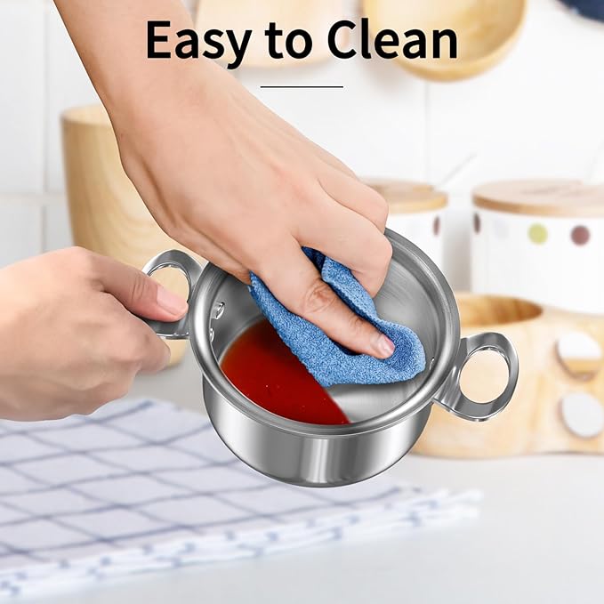 • Mini 3-Ply stainless steel construction: 18/10 stainless steel interior, polished stainless steel exterior, pure aluminium core sandwiched between two layers of stainless steel, all induction-ready. The three-layer construction ensures excellent can heat up quickly and dissipate heat evenly.