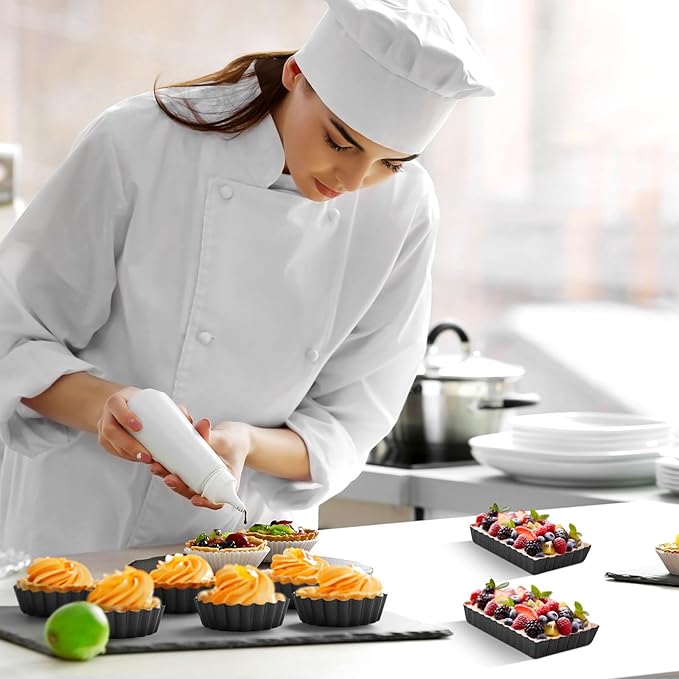 • Broadly Applicable: the pastry pans are nice for fruit tarts, small quiches, small pies, small tarts, mini lemon tarts, small pecan tarts, cheesecakes and more, suitable for restaurants, bakeries, buffets, weddings, Mother's Day, Valentine's Day, birthday parties, housewarming celebrations and other formal occasions
