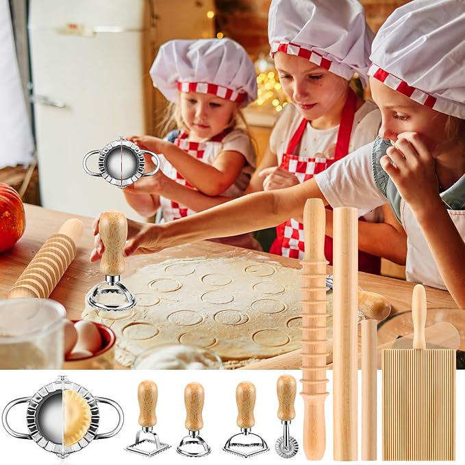 - Multifunctional and Versatile: This Italian Pasta Making Set comprises 9 tools, including a dumpling maker, wooden knife, rolling pin, gnocchi board, wooden pasta cutter with rollers, and 4 dumpling stamp cutters. Covering a range of needs, whether crafting Italian pasta, dumplings, cookies, or more, this set excels in assisting with various handmade pasta creations.