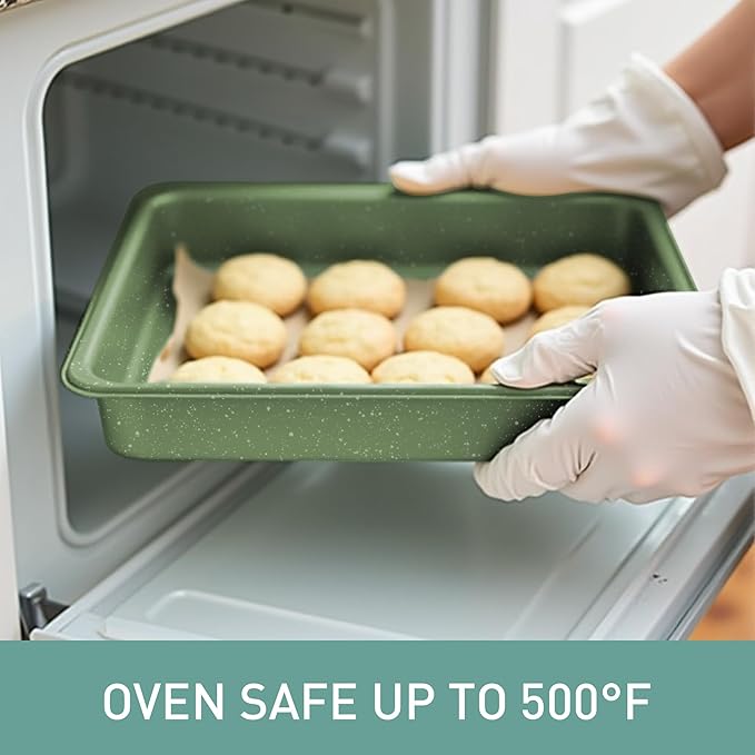 • Stylish Design: With its vibrant green color, this cookware set adds a touch of style to any kitchen. Upgrade your culinary experience with this beautiful and practical set