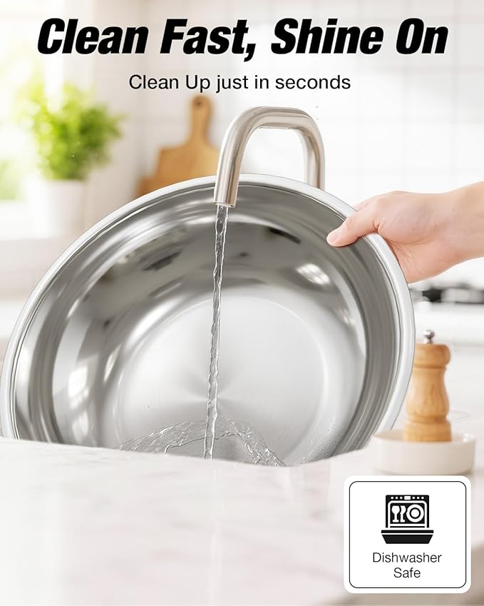 • EFFORTLESS CLEANUP & DISHWASHER SAFE - A mirror-polished stainless surface of the stainless steel chafing dishes for buffet prevents sticking, so washing is simple—whether you prefer a fast hand rinse or the convenience of a dishwasher