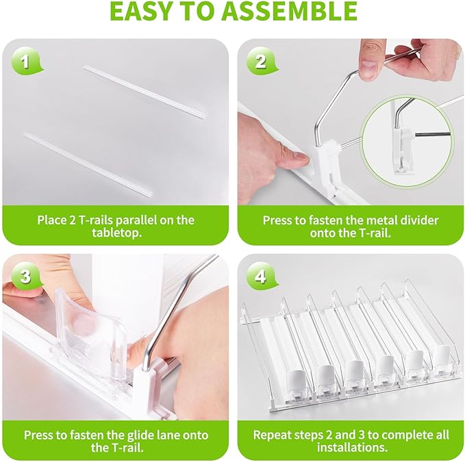• [Convenient Design] The soda can organizer for refrigerator features an integrated spring pusher design that automatically and smoothly slides your drink forward. This ensures that your drink is always prominently displayed for easy access