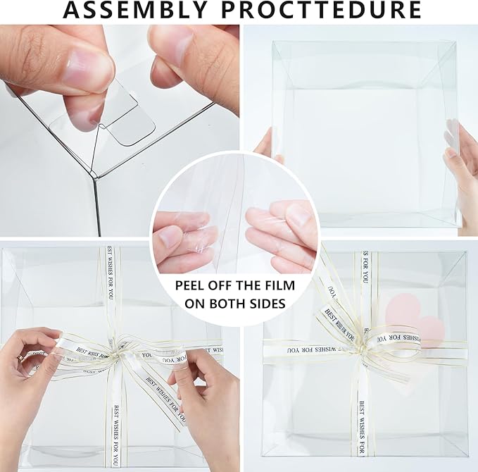 • ❤️Easy Assembly -Our instructional guide aids in swiftly assembling the clear plastic box. The flat design makes them easy to store, perfect for professional bakers as well as home-based bakeries. Before using the cake packaging, Please remove the protective film on both sides of the PET material.