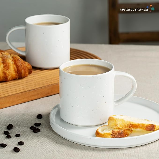 famiware Nebula 4 Pieces Coffee Mug, 14 oz Catering Mugs with Handle for Coffee, Tea, Cocoa, Milk, White with Colorful Speckles