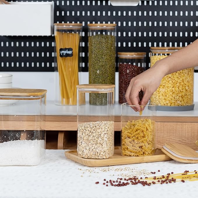 • [Multi-functional glass storage container]- This D2scrma airtight glass canisters with a natural bamboo lid and a good silicone seal ensures an airtight storage environment that keeps items fresh and extends their shelf life. Not only for kitchen storage, but even for pet food or other household items such as laundry beads, bathroom cotton balls, etc.