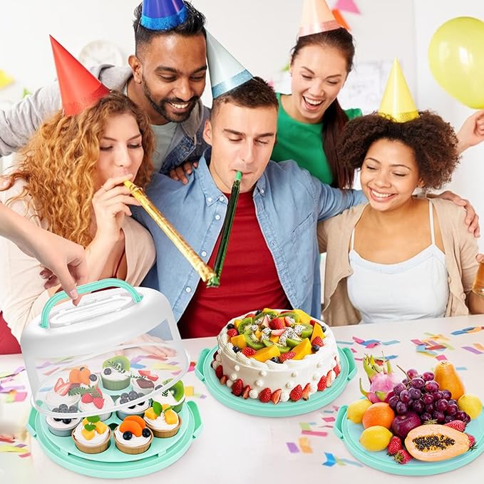 • Perfect for Any Occasion: From family BBQs to bake sales, this cake transport container keeps desserts fresh. The cake container with lid fits in fridges, while the handle makes it a portable cupcake carrier