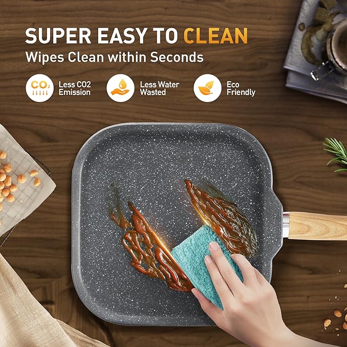 • 𝐄𝐚𝐬𝐲 𝐭𝐨 𝐂𝐥𝐞𝐚𝐧: Say goodbye to scrubbing and soaking. Our cookware features a smooth, easy-to-clean surface, ensuring that tidying up is as simple as enjoying your delicious creations. Easy to clean pots and pans set