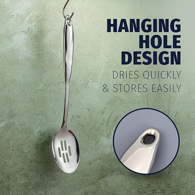 • NO HASSLE, ZULAY GUARANTEE: We love and take pride in our Stainless Steel Cooking Spoon Utensil and we back this up with a lifetime guarantee. If there are ever any issues, just contact us and we will make it right. Order now and be assured that this product will live up to your expectations, guaranteed. If it does not, we got you covered (even after the Amazon return window). Chances are, you will never need to reach out!