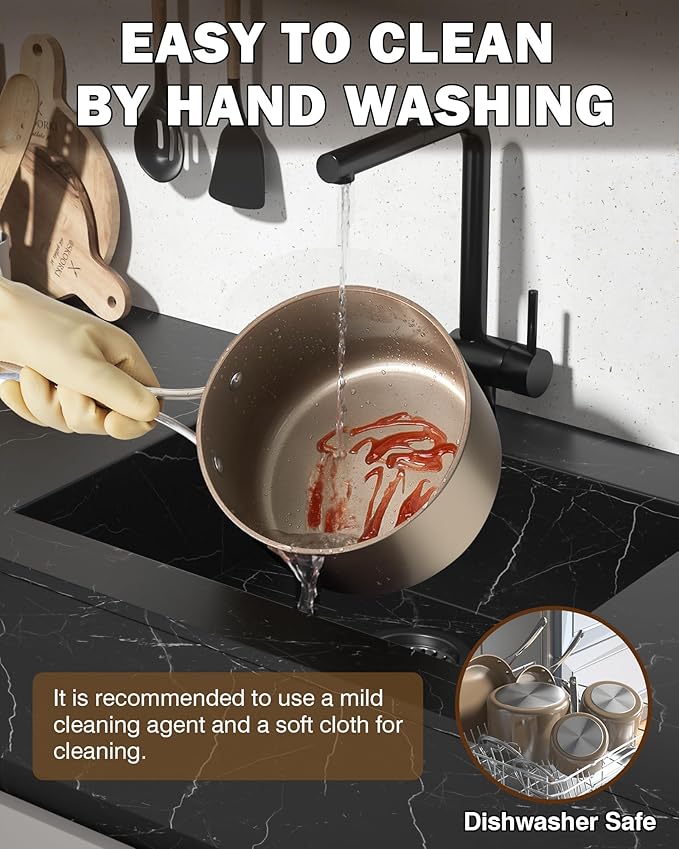 • HIGH QUALITY CERAMIC - The interior of sauce pan is complemented by a high-quality ceramic layer, which can prevent food from sticking and reduce the use of oil; The ceramic layer provides excellent heat retention, enabling precise temperature control.
