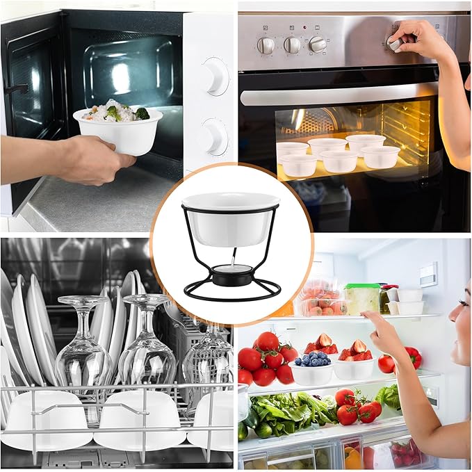 • Reliable and Elegant: constructed with ceramic and metal, the ceramic butter warmers for seafood set withstands high temperature, thus ensuring longevity; Its mainly white color offers a contemporary aesthetic appeal that easily compliments your kitchen decoration