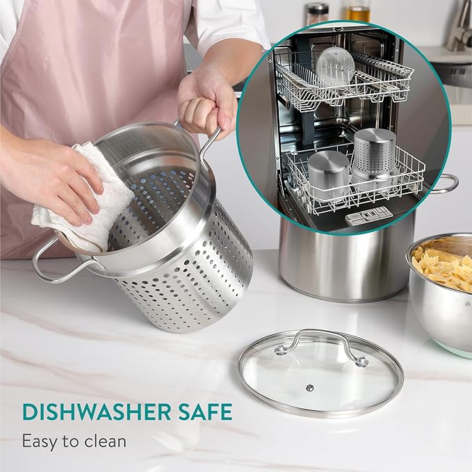 • OVEN-SAFE DESIGN: This pasta pot comes with an oven-safe glass lid and pot, allowing a transition from stovetop to oven up to 260 °C (500 F). An induction steamer that caters to all your cooking needs.