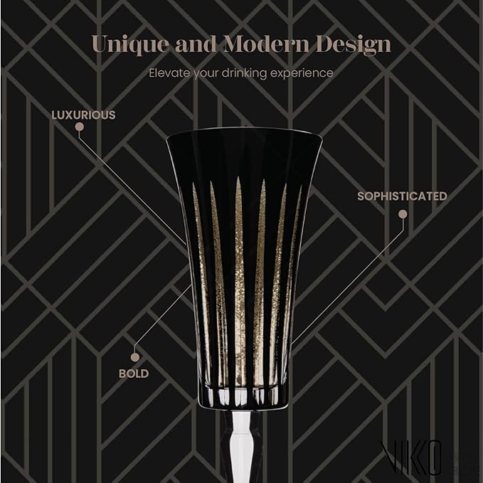Vikko Champagne Flutes, Timeless Collection 6 Ounce Elegant Wine Glass for Fine Dining, Set of 4 Black Goblets with Stem, Dishwasher Safe