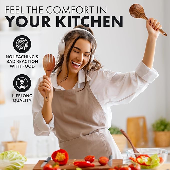 - IDEAL GIFT FOR COOKING ENTHUSIASTS: These kitchen utensils are beautifully crafted from teak wood, giving them an aesthetically pleasing ambiance in any kitchen. They make a great gift idea for housewarmings, birthdays, Christmas, and Thanksgiving. Perfect for loved ones who like to cook, chefs, or even for your own personal use. This set is perfect for freshening up or starting your kitchen, adding an attractive touch of class and sophistication.