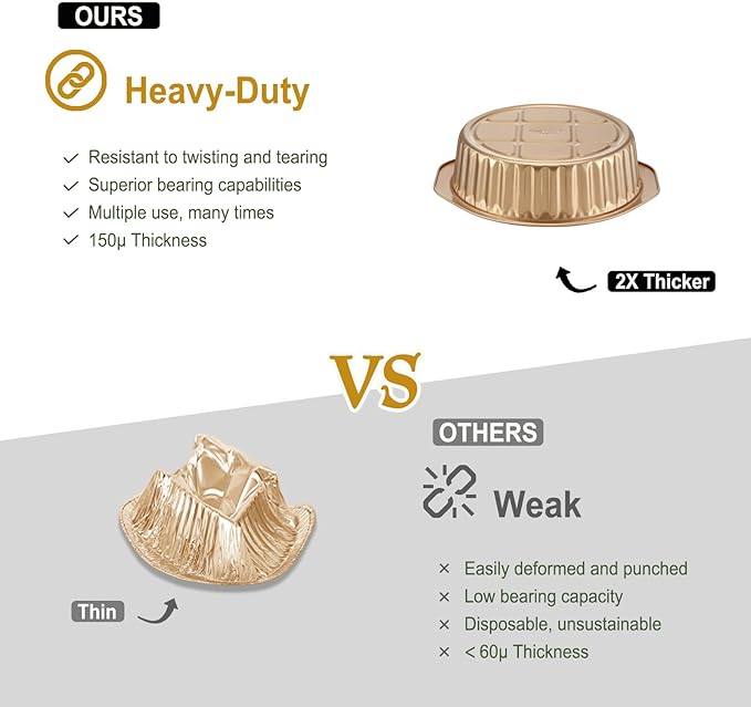 • Super Heavy-Duty: MESTAEK reusable aluminum foil pans are more than double thickness of any other regular disposable pans. Our multi-use pans are thicker and sturdy enough to reuse multiple times even clean them in the dishwasher
