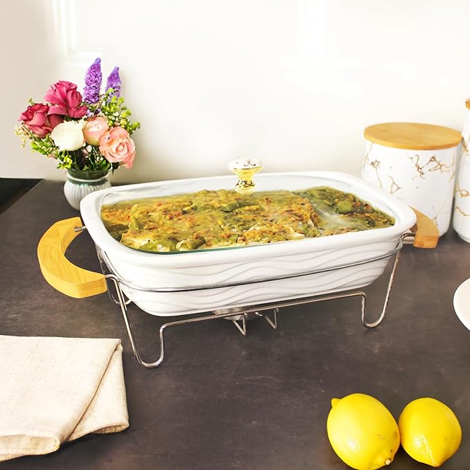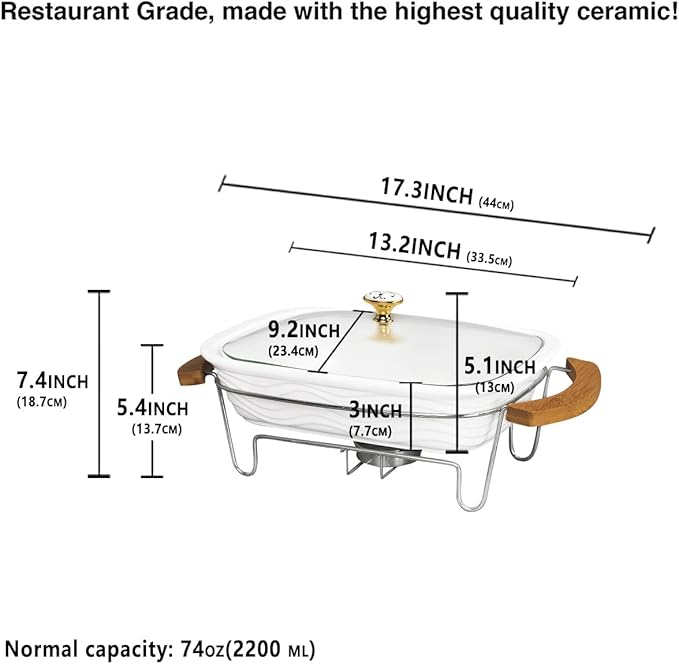• Multipurpose Baking Dish Set – size 17.3" x 9.2" Inch,capacity 2.2 Quarts, Our ceramic baking dish pans are ideal for all your favorite foods, Add color to your event, compared to stainless steel food trays, these vintage palace style porcelain plates have a sophisticated shine thanks to their white and gold plating.