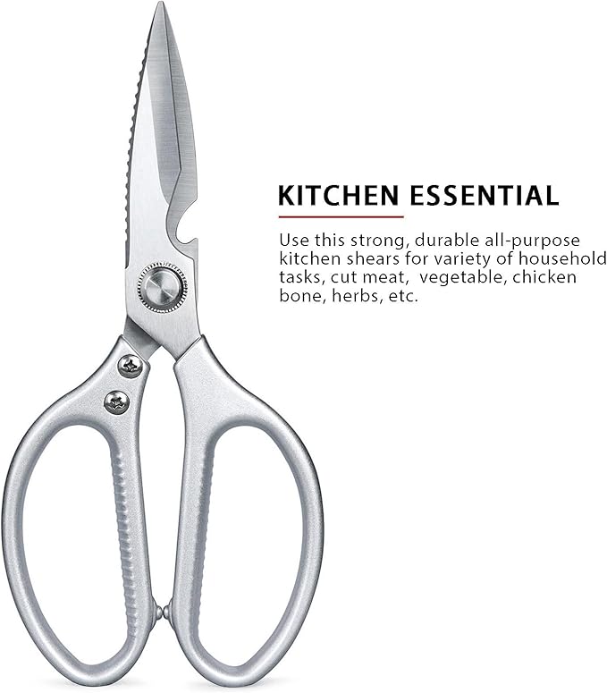 • ALL PURPOSE SHEARS FOR KITCHEN TASKS - Great for variety of kitchen tasks, cutting meat, chicken, poultry bone, fish, spatchcock turkey, vegetable, herb, seafood, BBQ, butchering turkey, and a household scissors for making delicious food like salad, pizza, and cooking noodles etc