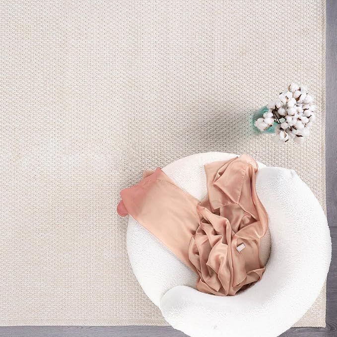 CAMILSON Easy Jute Rug 2x3, Indoor Outdoor Off-White Farmhouse Area Rugs for Living Room and Kitchen Rug, Solid Woven Design, Easy-Cleaning, Washable Outside Carpet Alfombras (2 x 3)