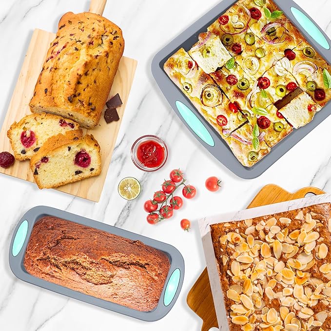 • Food Grade Silicone - The bakeware baking set are made of food grade silicone, is more flexible and lasting.