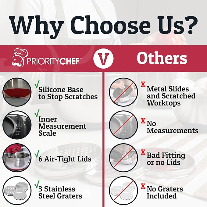• One-Bowl Grating & Slicing: Make salads and dishes directly in the bowl with our innovative grater attachments, minimizing cleanup and enhancing efficiency. Enjoy the simplicity of slicing cucumbers or grating cheese straight into the bowl, making meal prep quicker