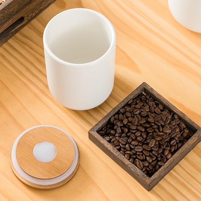 • Durable Ceramic Canister Set - Made from sturdy ceramic, the storage jars are more durable than plastic or glass, ensuring long-lasting use. The bamboo wood lids with silicone seals create a secure closure, preserving the flavor and freshness of your pantry staples for longer periods.