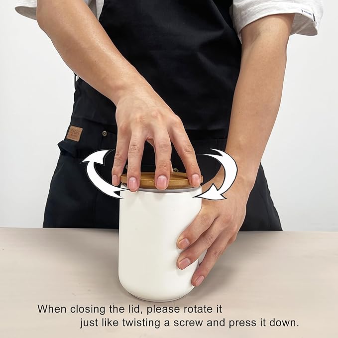 • Easy-to-Use Design - Screw the lid on tightly like a screw to remove air and improve sealing. Wide mouth allows for easy access to contents. The smooth glaze finish simplifies cleaning, and the ceramic jars are dishwasher safe for hassle-free maintenance. Hand washing is recommended for the bamboo lids.