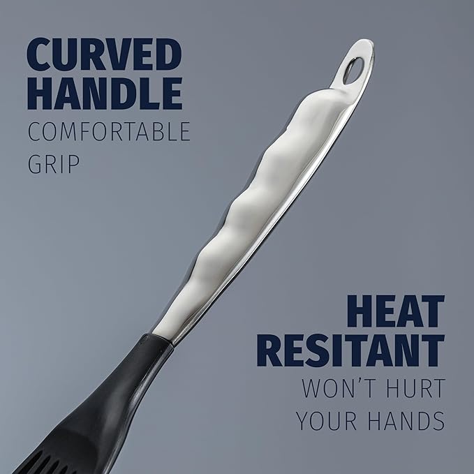 • SLOTTED DESIGN FOR DRAINING: Slots in the head allow grease to drain away efficiently, promoting healthier cooking by reducing excess oil.