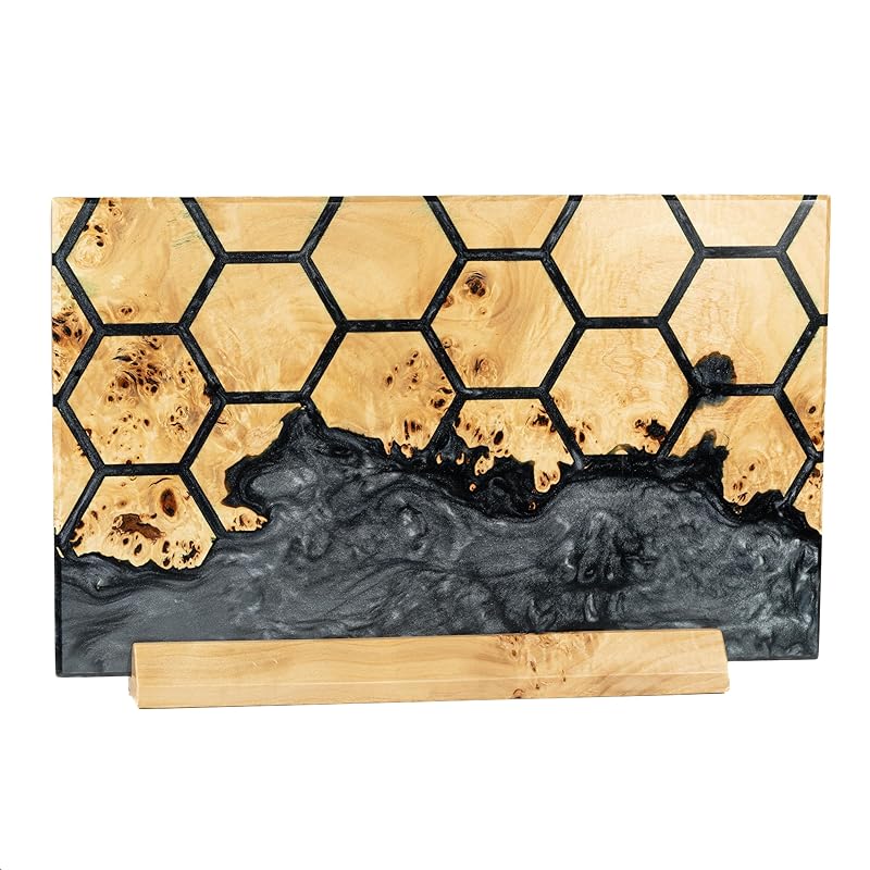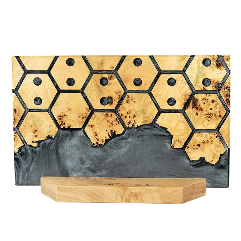 • 🔷 UNIQUE DESIGN WITH NATURAL TEXTURE: Each magnetic knife organizer features a captivating hexagon pattern made from a single solid piece of poplar. The continuous wood grain and artisan epoxy detailing tell the story of a unified slice — not random scraps. Please note: the natural wood grain and resin patterns vary slightly, making each piece completely unique.