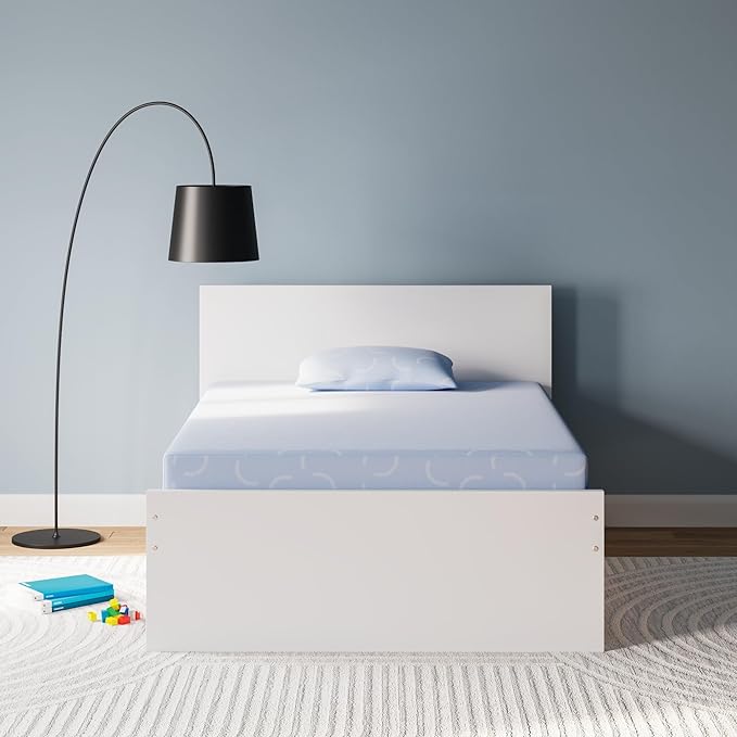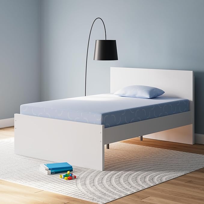 Signature Design by Ashley Full Size iKidz 7 Inch Firm Gel Memory Foam Mattress with Stretch Knit Cover & Pillow Included, Blue Ocean, Fiberglass Free, Mattress in A Box