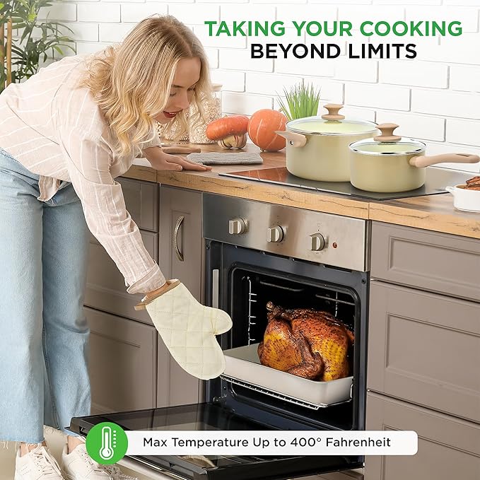 • USER-FRIENDLY DESIGN - Embrace eco-conscious cooking with our food-grade ready and user-friendly kitchenware. The pots and pans nonstick set is constructed with care, ready to use for gas, electric, ceramic, and induction counter cooktops