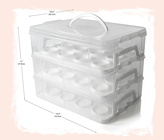 • Flexible Stacking: Customize storage for up to 36 cupcake/muffin treats or 3 cakes with removable, tiered compartments