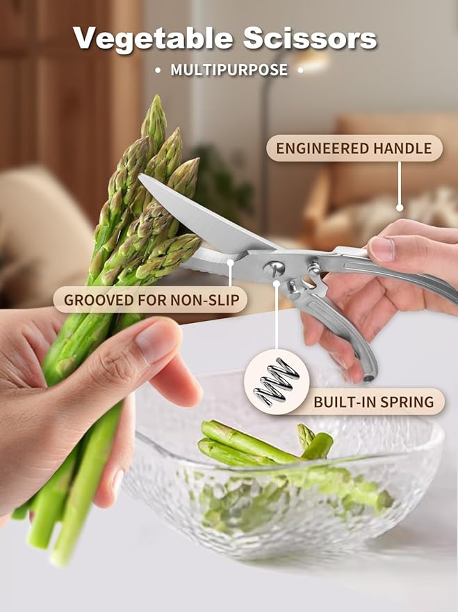 • Premium Sharp Blades, Tough Task Settlement:This heavy duty kitchen scissors are crafted with precision blades,ensuring accurate cuts every time.From handling chicken bones to cutting beef, lamb,turkey,seafood,or vegetables,Zuacs kitchen scissors help you effortlessly handle all your kitchen tasks;