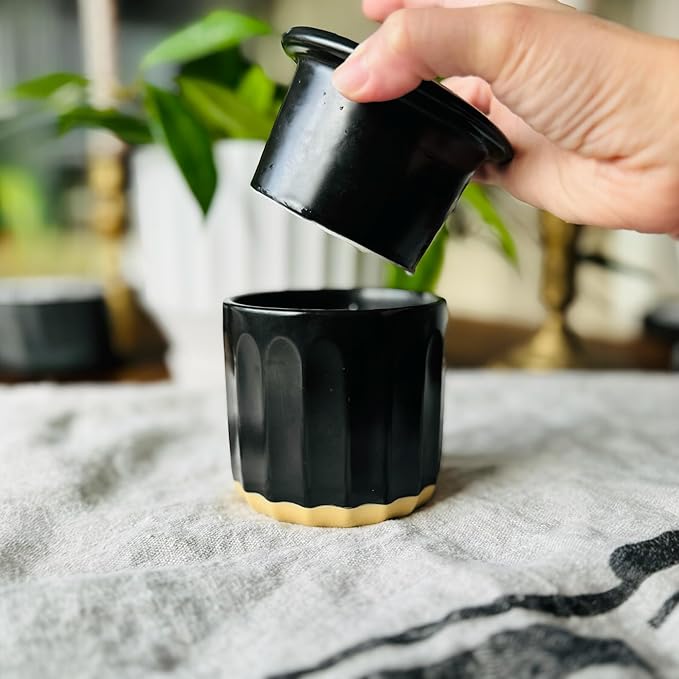BLAKE 'N' GREY Culinary Elegance: Black Fluted Ceramic French Butter Keeper – A Stylish Touch to Preserve and Serve Perfectly Spreadable Butter