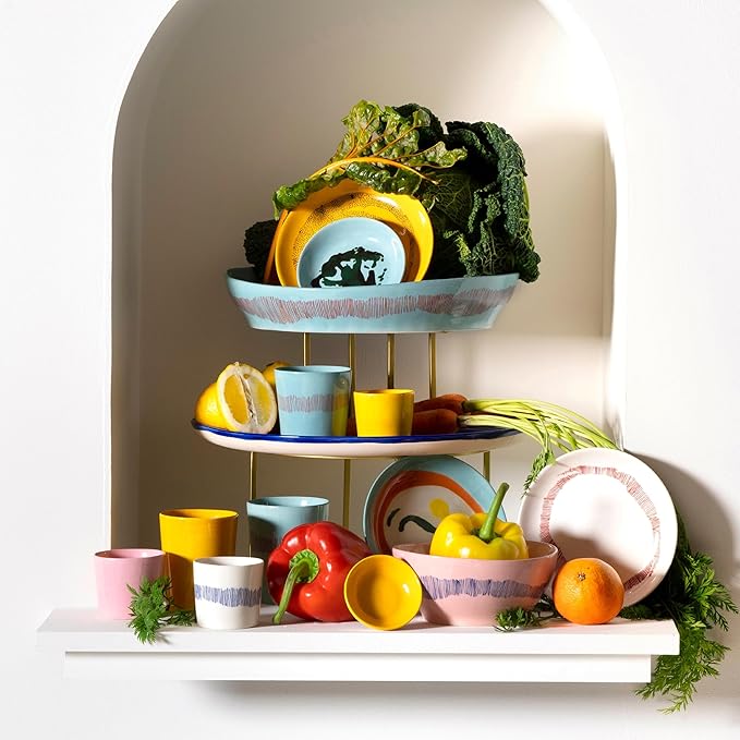 Appetizer Plate | Feast tableware by Ottolenghi | 2 Starter Plates | Stoneware Dinnerware Set in white red | luxury Dishware Set for Dinner at Home, Party, Christmas | Kitchen Sets