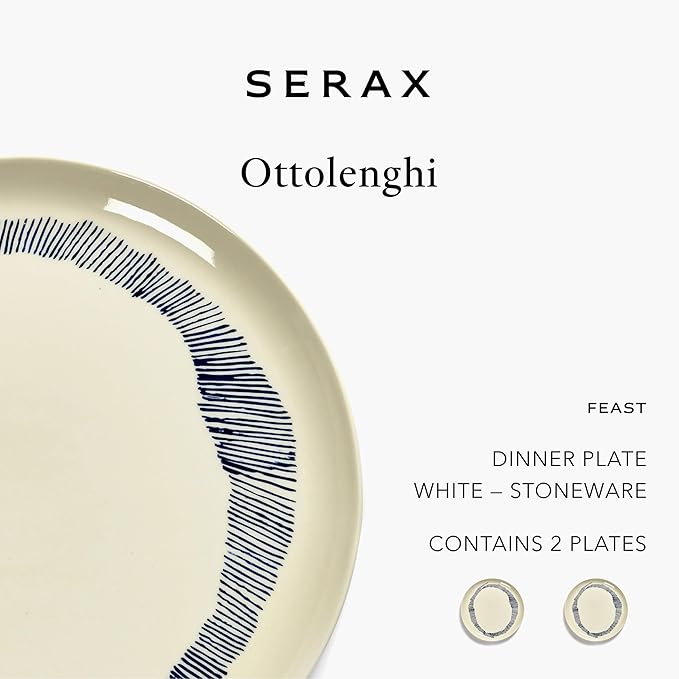 • SPECIAL ATTRIBUTES - microwaveable, Dishwasher Safe, Discover Ottolenghi's artistic FEAST collection with this ceramic dinner plate | With this white plate, with a dark blue O-shaped brush stroke, create a lavish atmosphere at the table