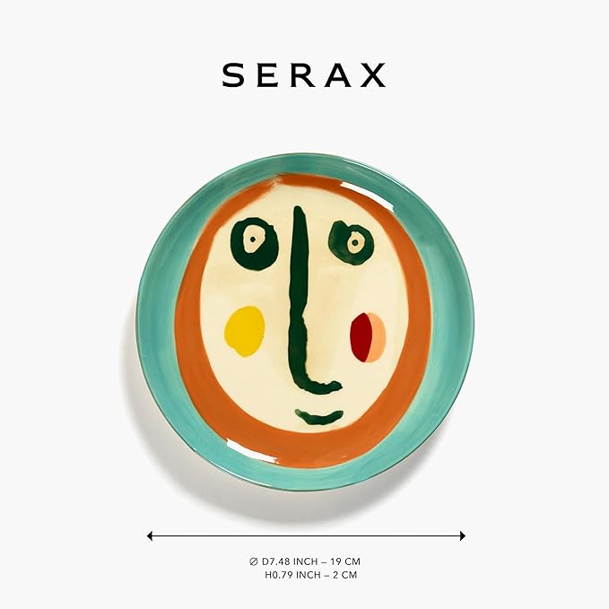 • SPECIAL ATTRIBUTES - microwaveable, Dishwasher Safe, light dishes love to be served on a designer breakfast plate - these colorful plates offer a luxurious experience | This playful earthenware plate is cream-colored with a picture of a face in deep blue