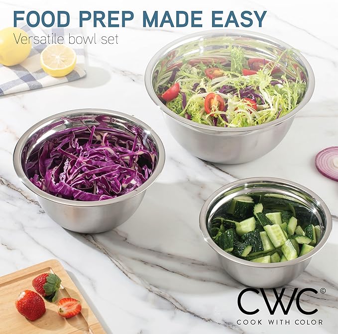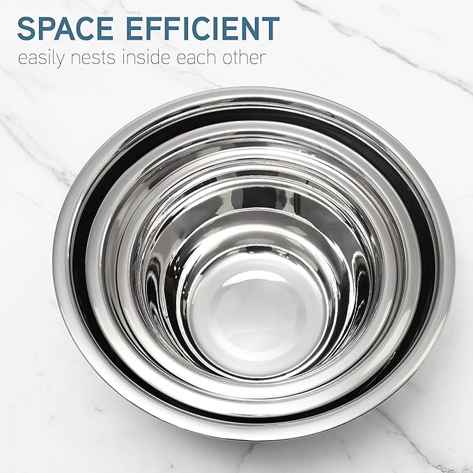 • Premium Stainless Steel: Crafted from high-grade 18/10 stainless steel, these bowls ensure durability, corrosion resistance, and a sleek, modern aesthetic that complements any kitchen decor.