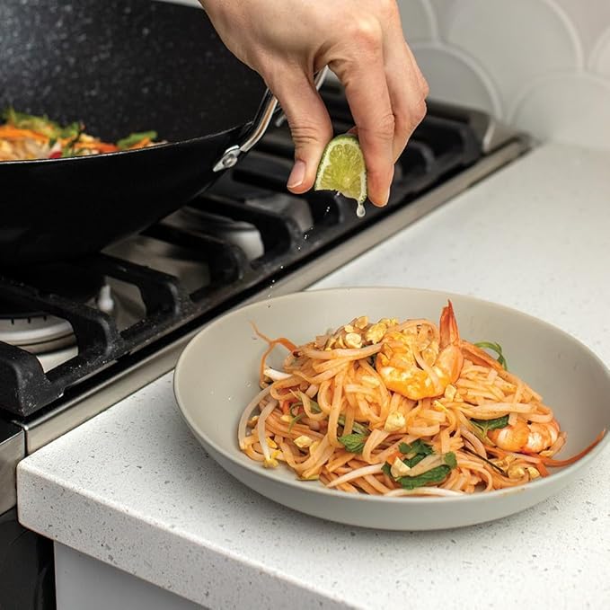 • Our Spun Wok boasts a ceramic non-stick coating which is a Swiss-made 3-layer nano coating promoting seamless stirring and ingredient tossing, say goodbye to stubborn food residue