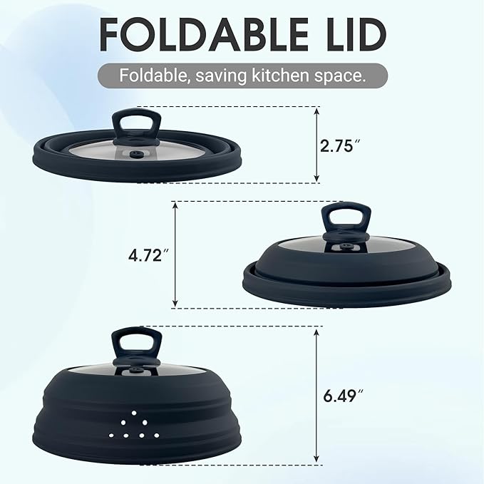• Foldable Microwave Lid: Designed with a foldable arch, this microwave splatter cover fits most plates and bowls, accommodating different food portions and catering to families of all sizes. It is easy to store in cabinets or drawers without occupying much space, making it an ideal collapsible microwave splatter cover.