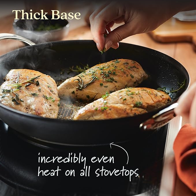 • INNOVATIVE BASE: Hybrid nonstick frying pans feature a thick, uniquely constructed stainless steel base that stays flat while delivering incredibly even heat on any cooktop, including induction