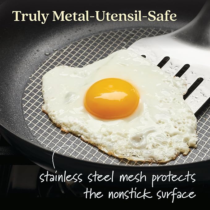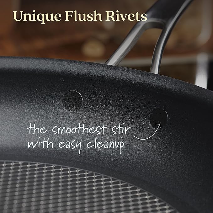• SEAMLESS SURFACE: Unique, flush rivets and ultra-durable nonstick deliver one of the smoothest, longest lasting frying pan surfaces yet -- for recipes that glide off the pan and faster, easier cleanup