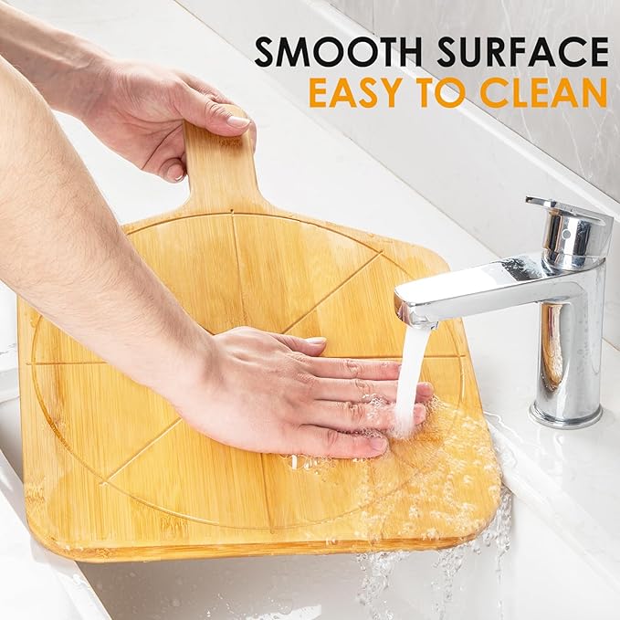 • Happy Cook Time - Perfect for organizing everything during making Pizza.pizza peels are made from natural bamboo.make cleaning easy to keep your kitchen clean. Arrange all parts at table corner, save your kitchen space.