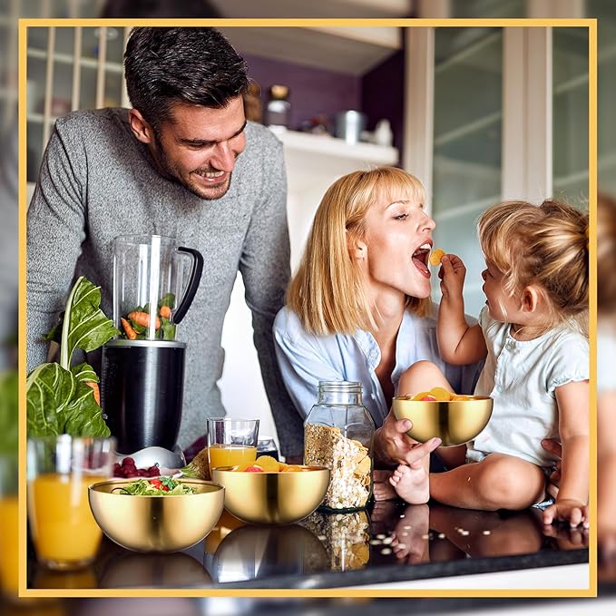 • Easy to Clean: our gold serving bowls are made with exquisite polishing and drawing processes, making the surface of the gold metal cereal bowl smooth and delicate, comfortable to touch, at the same time, its integrated roll is smooth and smooth, will not hurt the mouth and hands, making our stainless steel salad bowls smooth surface, no rough spots, so that stains are not easy to stay on our plates, easy to clean