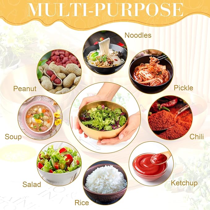 • Conveniently Multi Purpose: the gold facial bowl set has numerous uses; It can serve as baking mixing bowls, cereal bowls, dessert bowls, rice bowls, fruit bowls, dipping bowls, and more; Its versatile nature makes it an ideal choice for restaurants, barbecue parties, camping, and home use