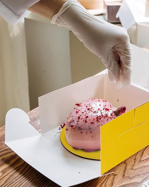 qiqee 10x10x5 Cake Box, 18 Sets Gold Cake Box with Window & 18 Sets 10" Gold Cake Round Boards, 10inch Cake Containers