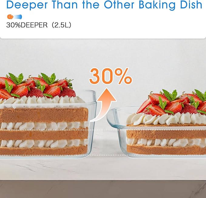 • Safe for Your Family: One of the biggest benefits of baking, cooking, and storing foods and liquids in glass is that it’s nonporous. Never worry about food, germs, smells or any nasty chemicals seeping into these glass baking dish. It is one of the most hygienic kitchenware you can use.