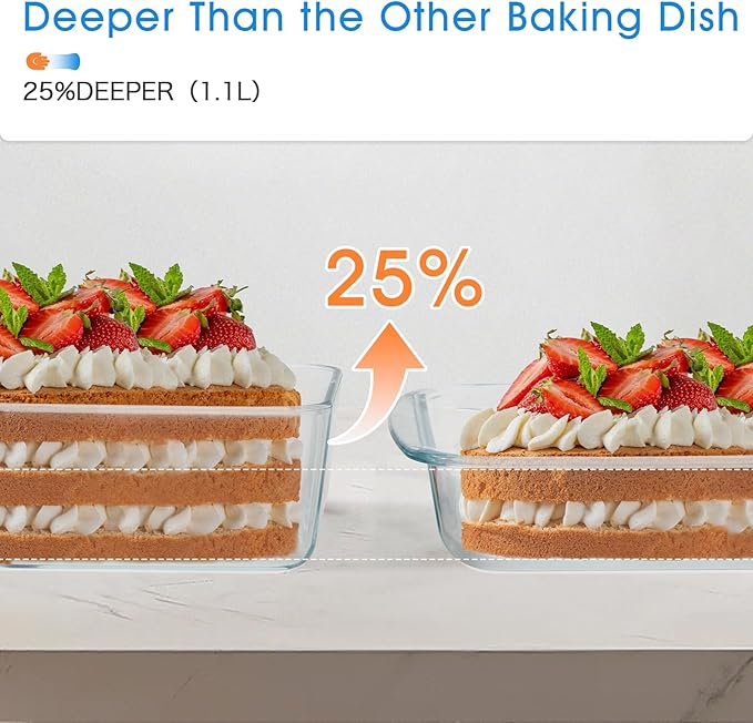 • Small Capacity: One serving capacity ( 6×6inch), don't worry about wasting food.Capacity: approx 30 oz ( Normal Capacity ).Suitable for portion control or kids and 25% deeper than the other baking dish.Ideal for fruit cake, lasagna, casseroles, meatloaf, brownies, banana bread, and all your favorite savory or holiday side dishes!