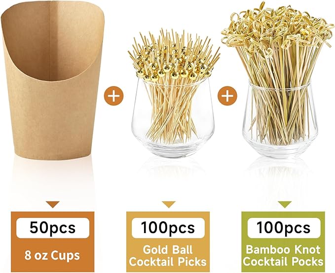 • Value Pack: Package includes 50pcs 8oz charcuterie cups and 200pcs cocktail sticks (2 styles), great charcuterie accessories for parties, concession stands and snack bars